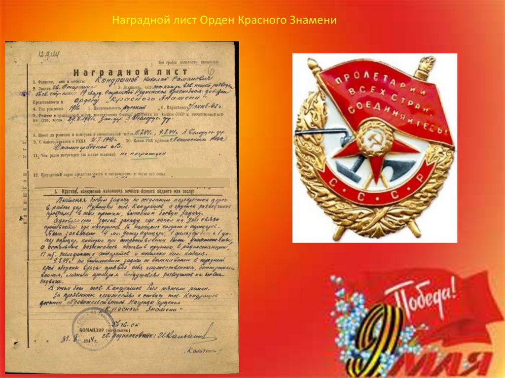 Наградной лист Орден Красного Знамени6.