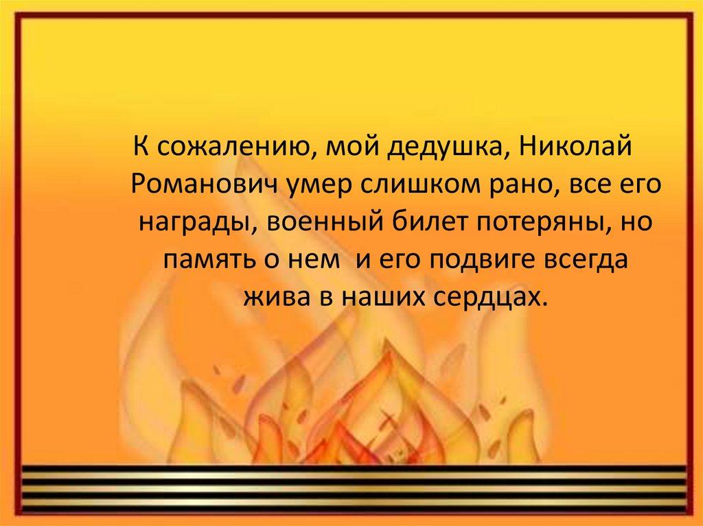 К сожалению, мой дедушка, НиколайРоманович умер слишком рано, все его