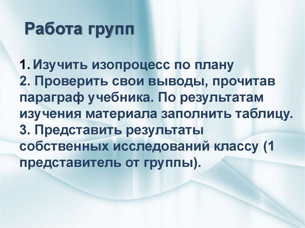 9. 1. Перейдите по ссылке на Интернет – ресурс ГАЗОВЫЕ ЗАКОНЫ-2 2. Задайте графики изопроцессов: длительность каждого процесса 6