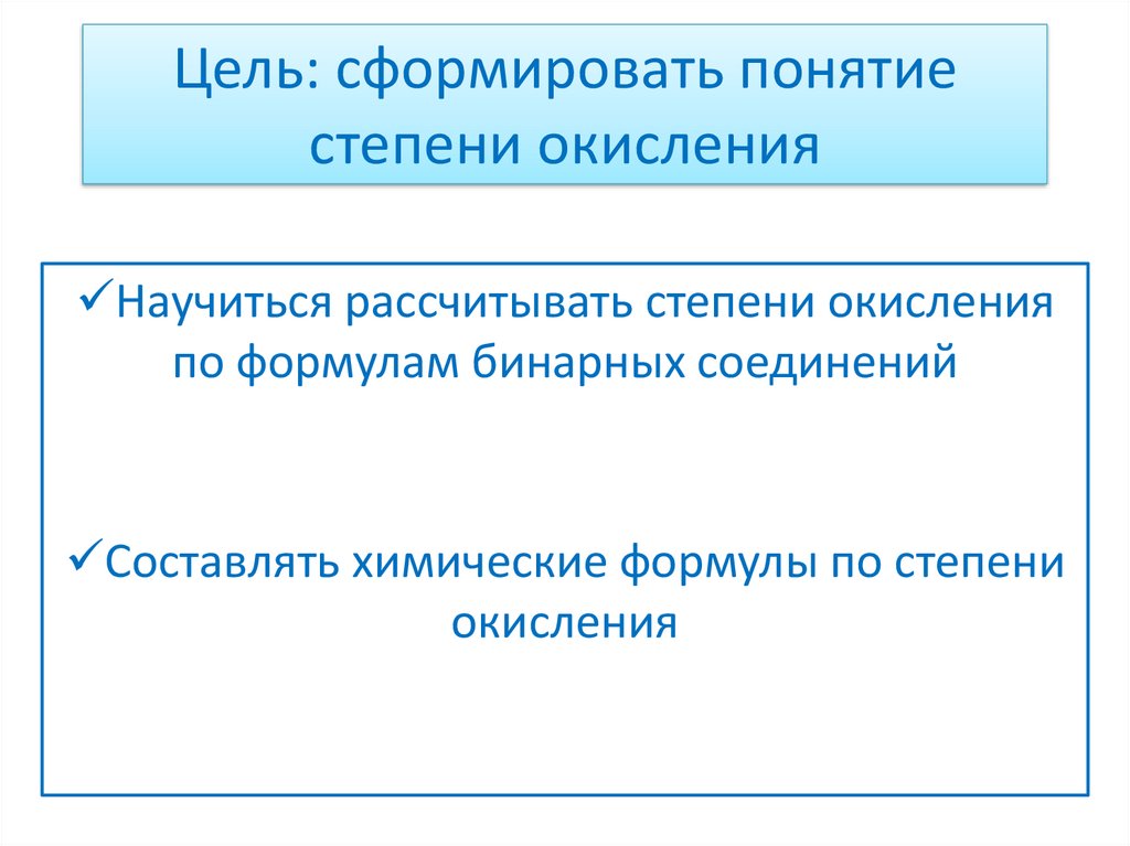 Цель: сформировать понятиестепени окисления