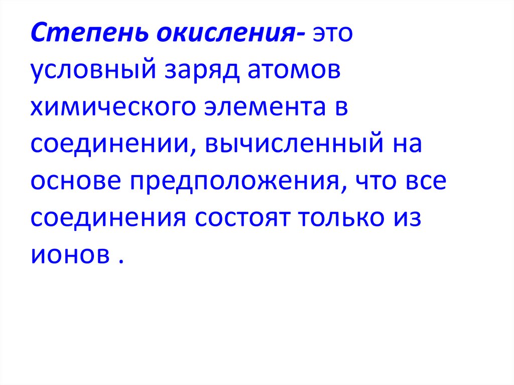 Степень окисления- этоусловный заряд атомов