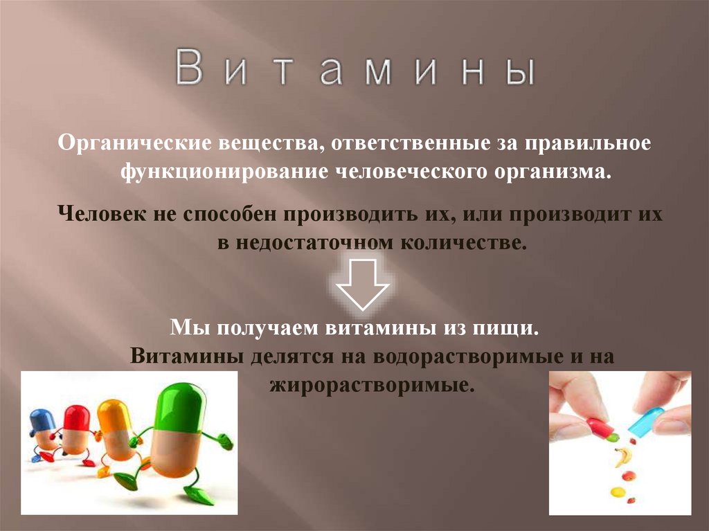 Органические вещества, ответственные за правильноефункционирование человеческого организма.
