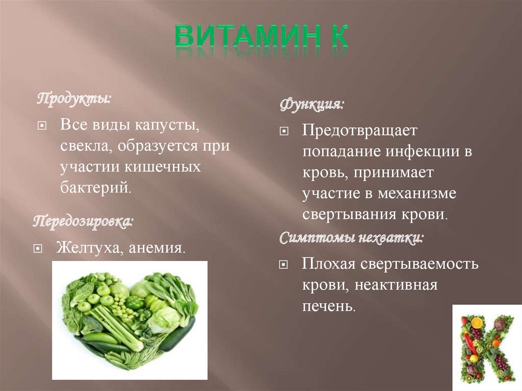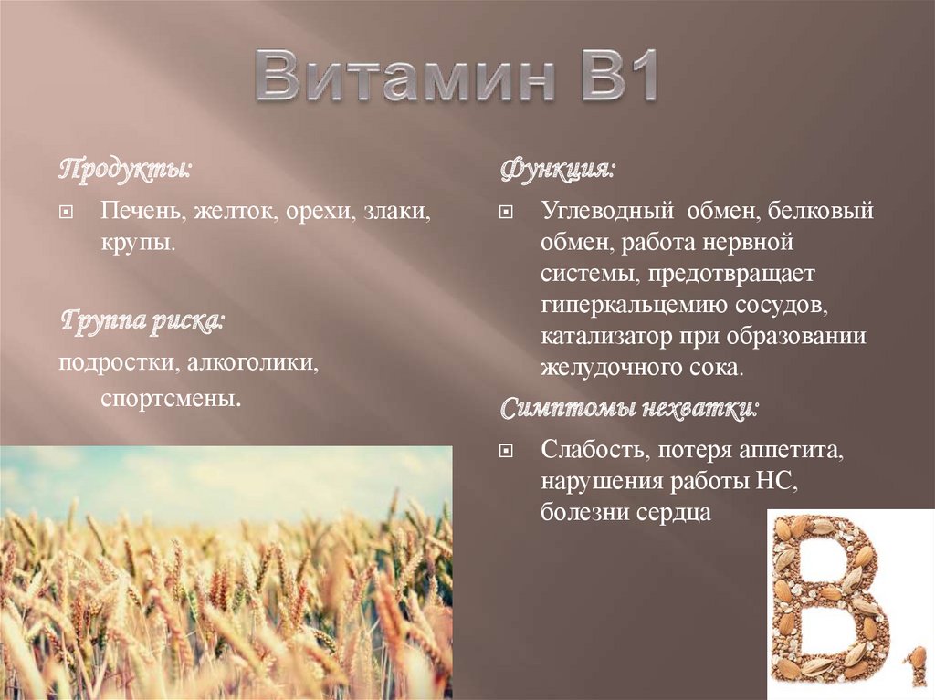 Продукты:Печень, желток, орехи, злаки,