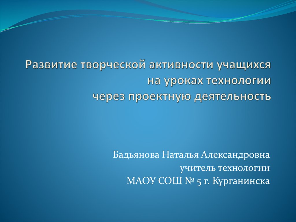 Развитие творческой активности учащихся на уроках технологии через проектную деятельность