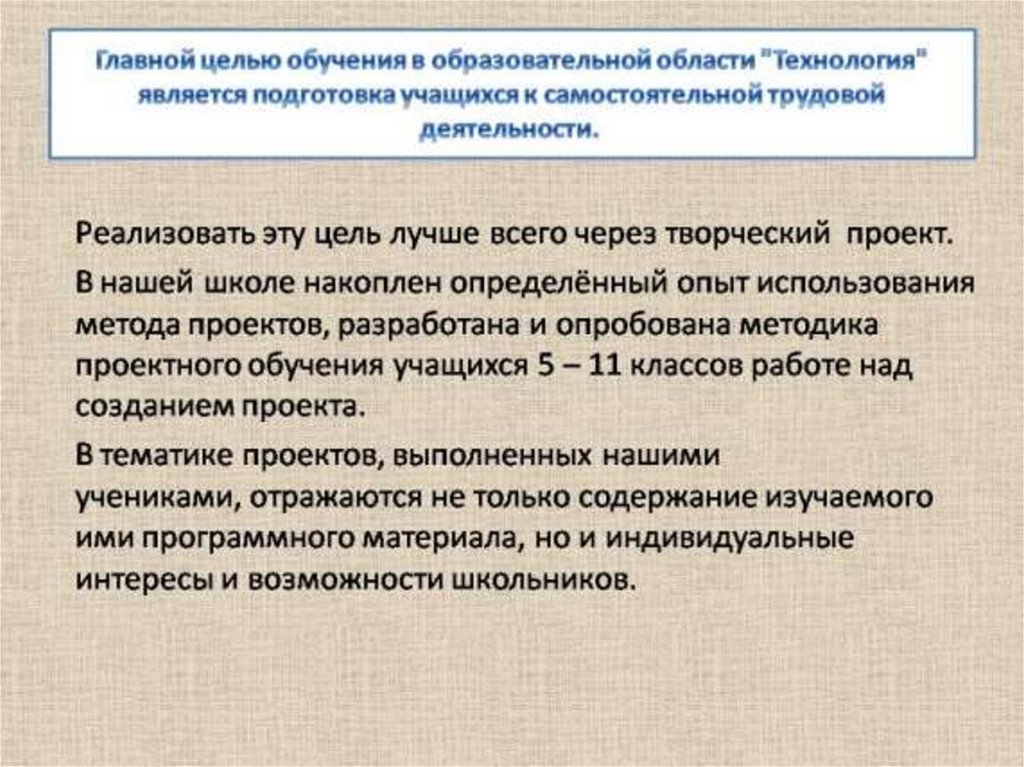 Развитие творческих способностей учащихся на уроках технологии через метод проектов