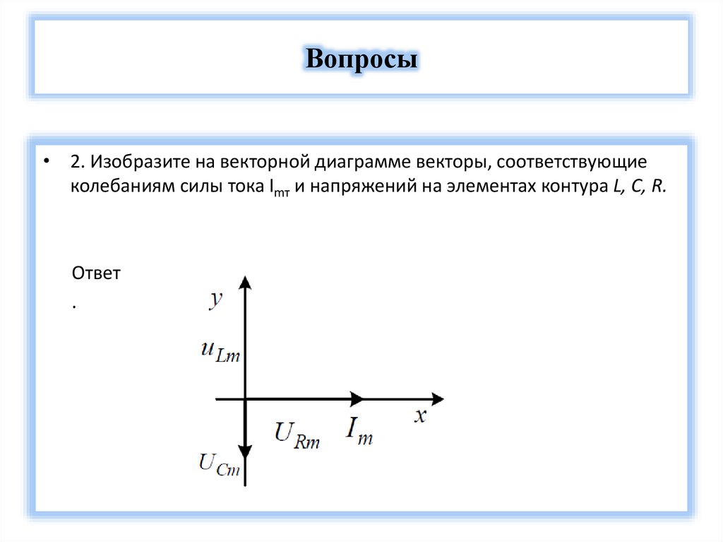 Вопросы• 2. Изобразите на векторной диаграмме векторы, соответствующие