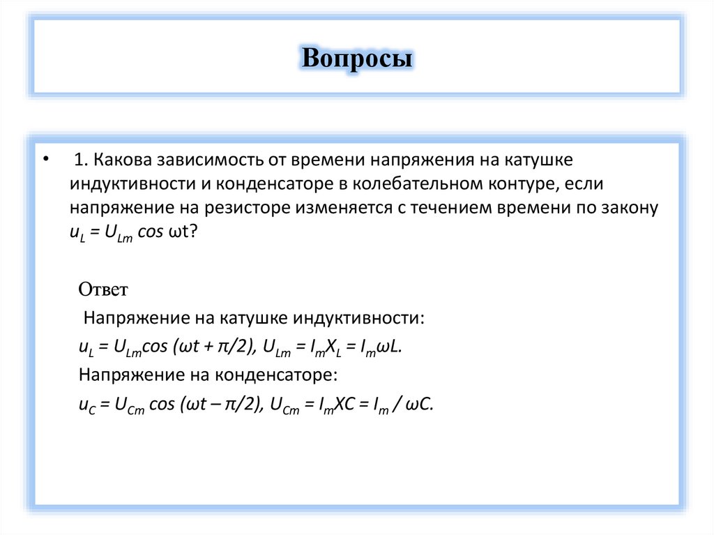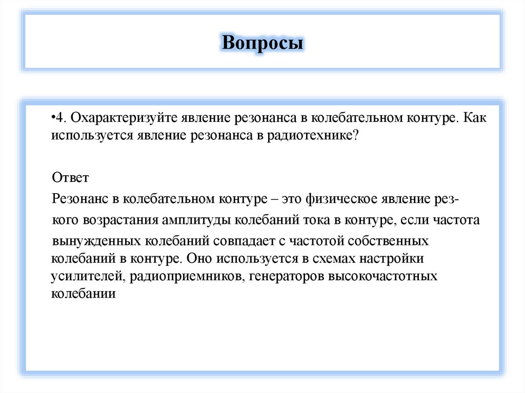 Вопросы•4. Охарактеризуйте явление резонанса в колебательном контуре. Как