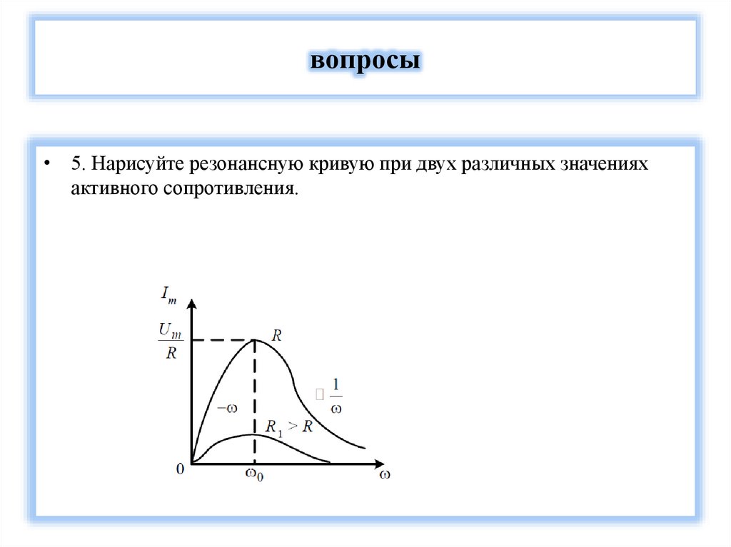 вопросы• 5. Нарисуйте резонансную кривую при двух различных значениях