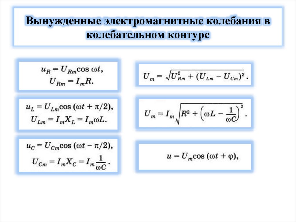 колебаниям силы тока Imт и напряжений на элементах контура L, С, R.