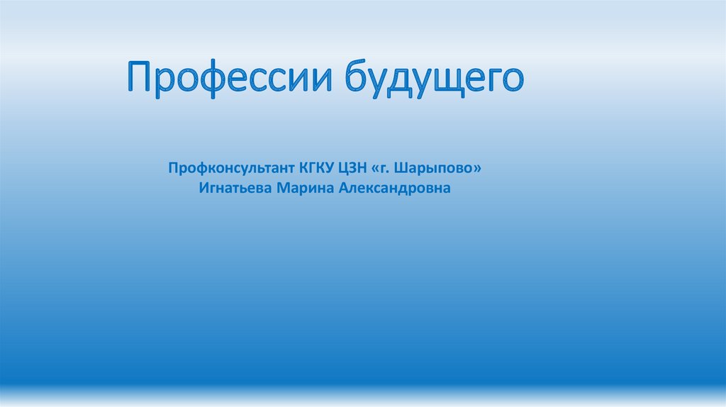 Профессии будущегоПрофконсультант КГКУ ЦЗН «г. Шарыпово»