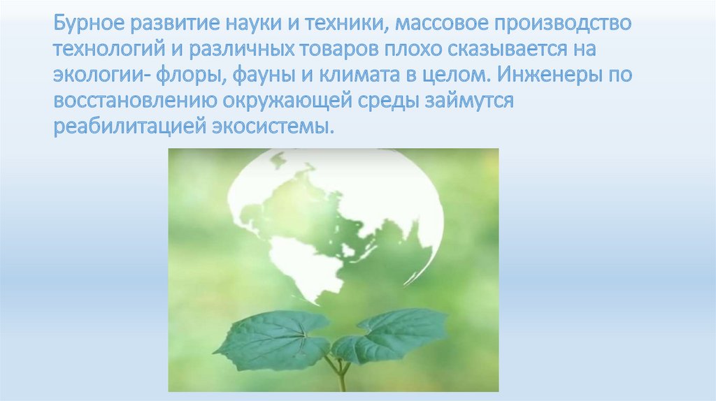 экологии- флоры, фауны и климата в целом. Инженеры по