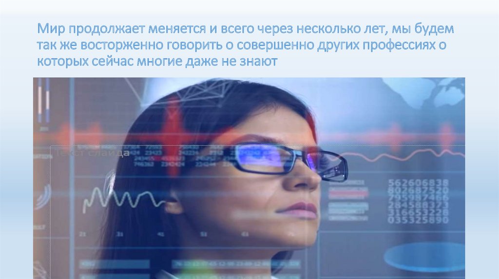 Мир продолжает меняется и всего через несколько лет, мы будемтак же восторженно говорить о совершенно других профессиях о