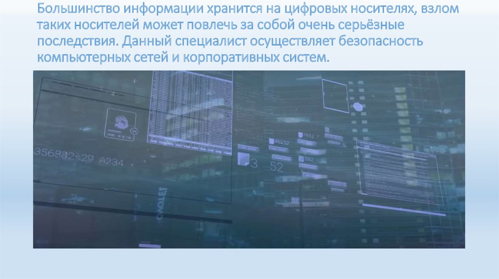 Большинство информации хранится на цифровых носителях, взломтаких носителей может повлечь за собой очень серьёзные