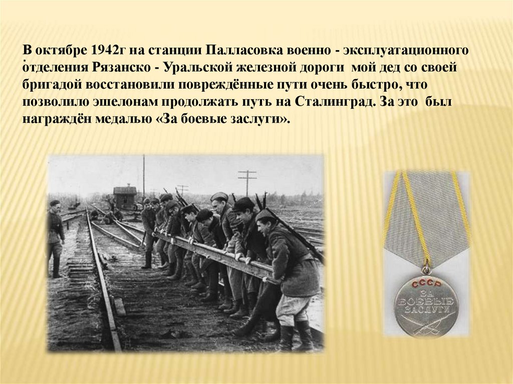 позволило эшелонам продолжать путь на Сталинград. За это был
