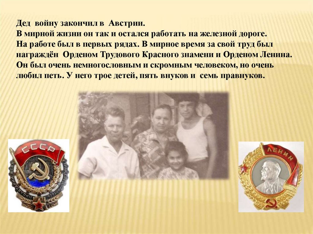Дед войну закончил в Австрии.В мирной жизни он так и остался работать на железной дороге.