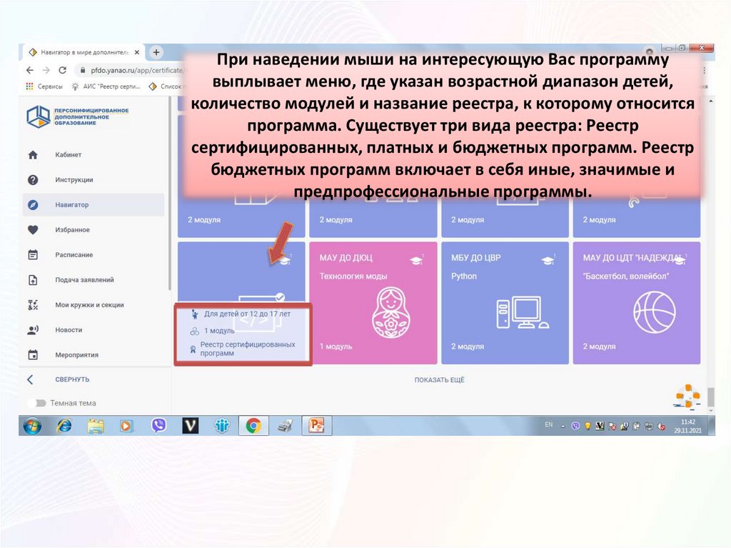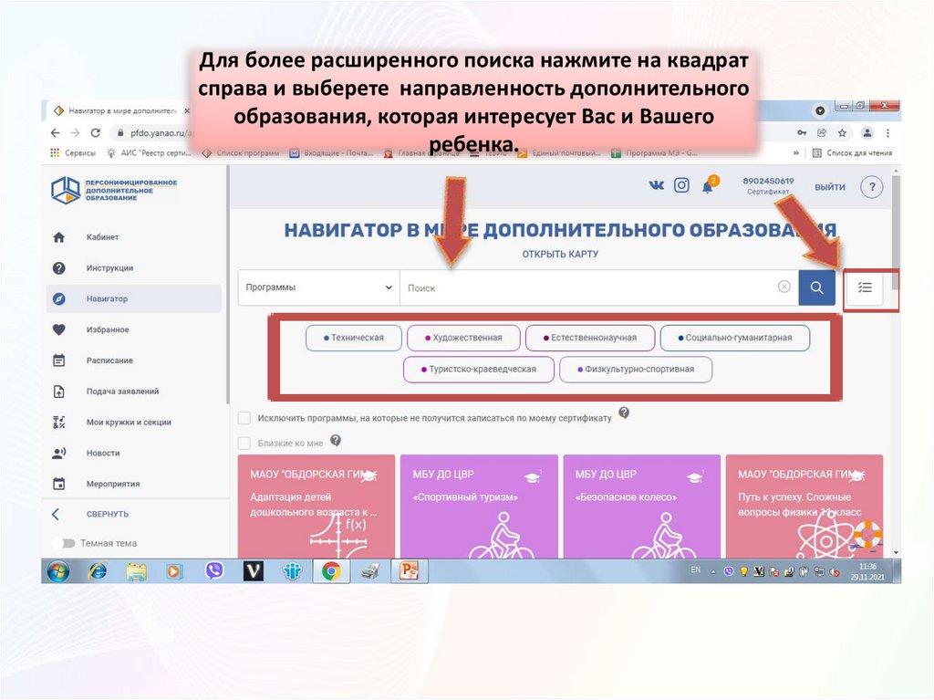 помощью навигатора дополнительного образования на Портале ПФДО.