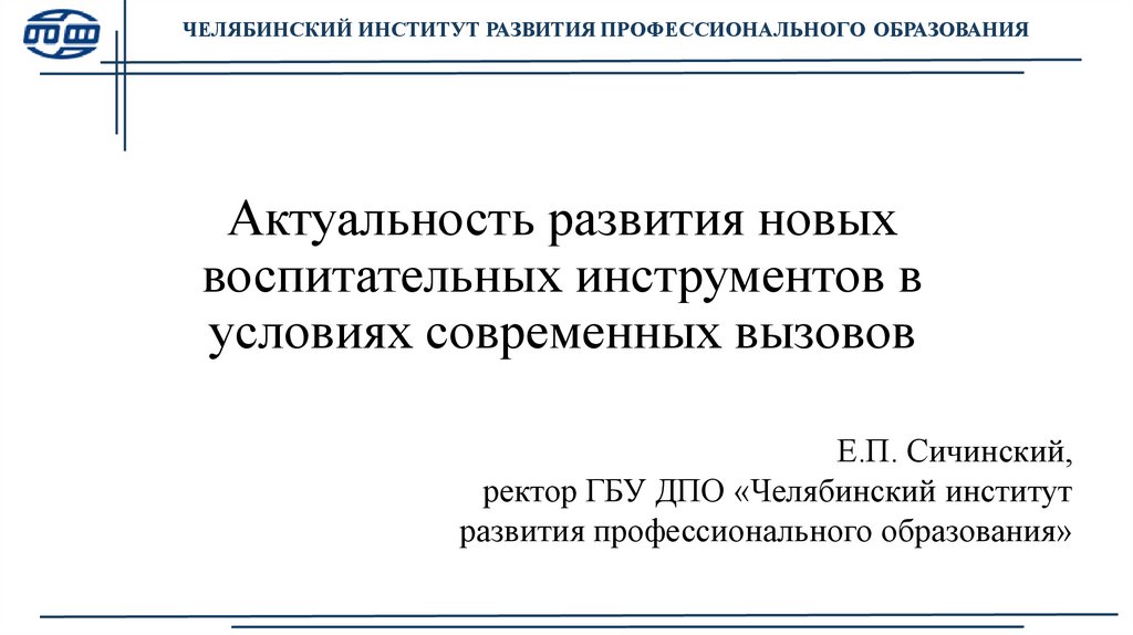 ЧЕЛЯБИНСКИЙ ИНСТИТУТ РАЗВИТИЯ ПРОФЕССИОНАЛЬНОГО ОБРАЗОВАНИЯАктуальность развития новых