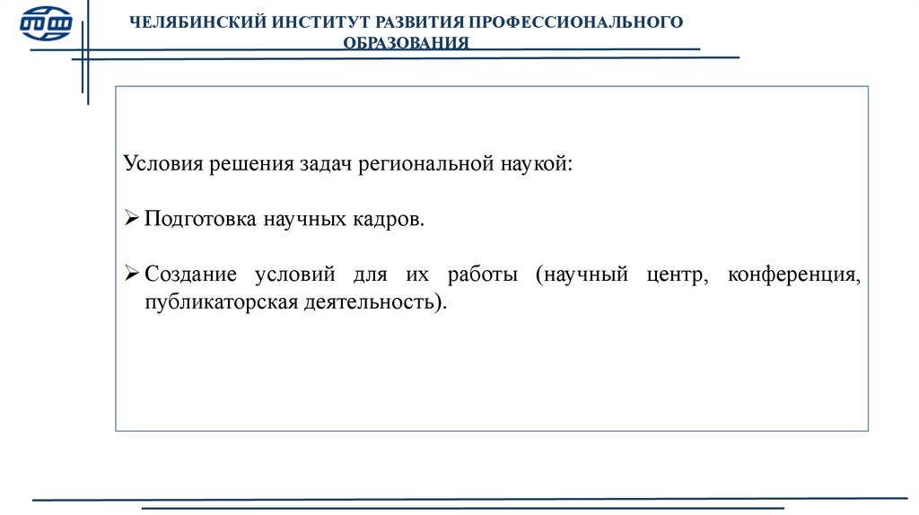 ЧЕЛЯБИНСКИЙ ИНСТИТУТ РАЗВИТИЯ ПРОФЕССИОНАЛЬНОГООБРАЗОВАНИЯ
