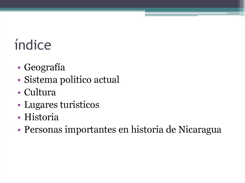 Nicaragua. Índice