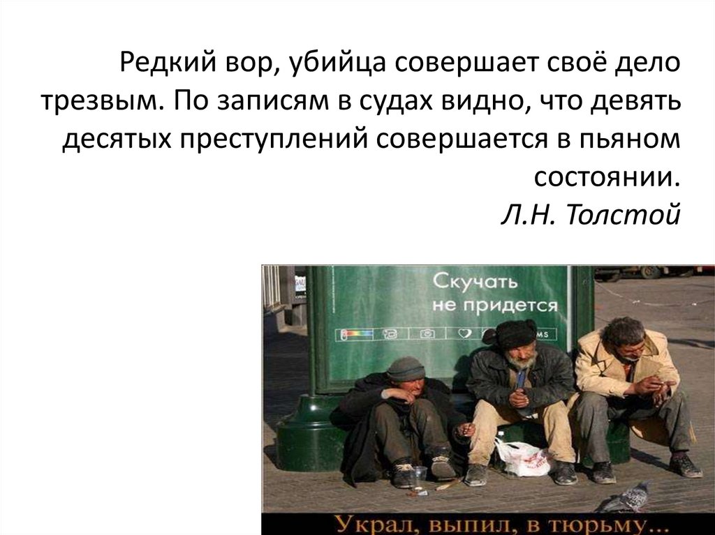 Редкий вор, убийца совершает своё делотрезвым. По записям в судах видно, что девять