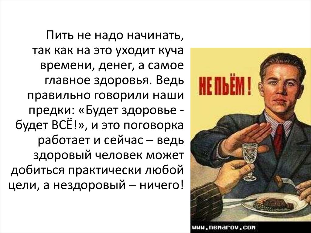 Пить не надо начинать,так как на это уходит куча