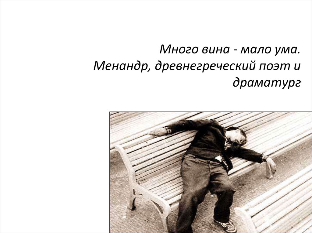 Много вина - мало ума.Менандр, древнегреческий поэт и