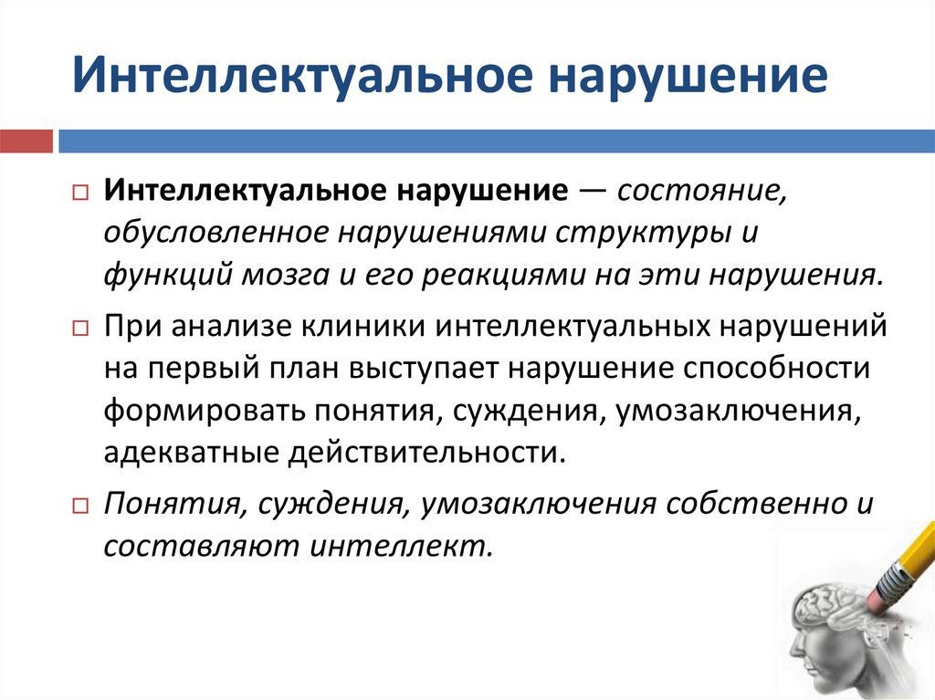 Интеллектуальное нарушениеИнтеллектуальное нарушение — состояние,