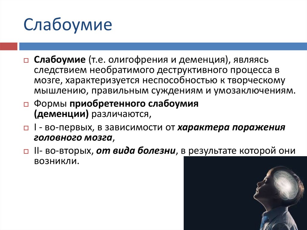 СлабоумиеСлабоумие (т.е. олигофрения и деменция), являясь
