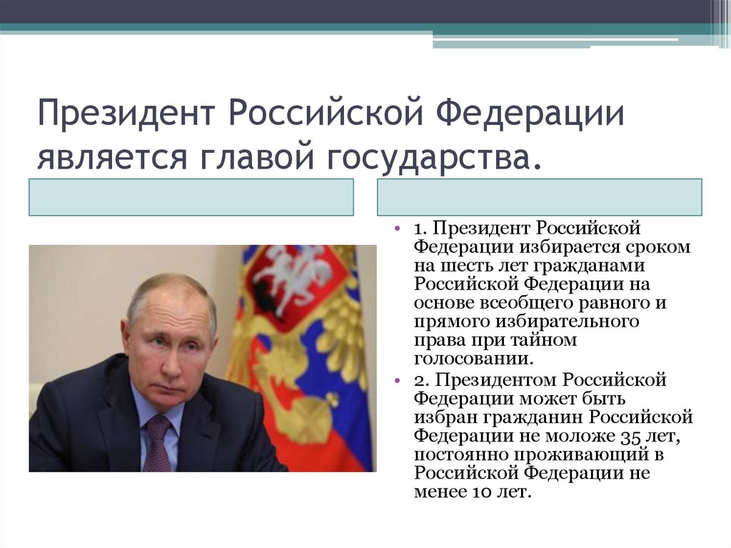Президент Российской Федерацииявляется главой государства.