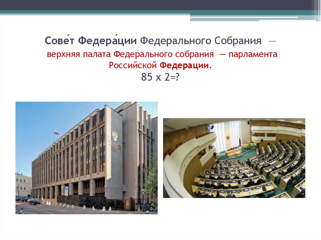 Сове́т Федера́ции Федерального Собрания —верхняя палата Федерального собрания — парламента