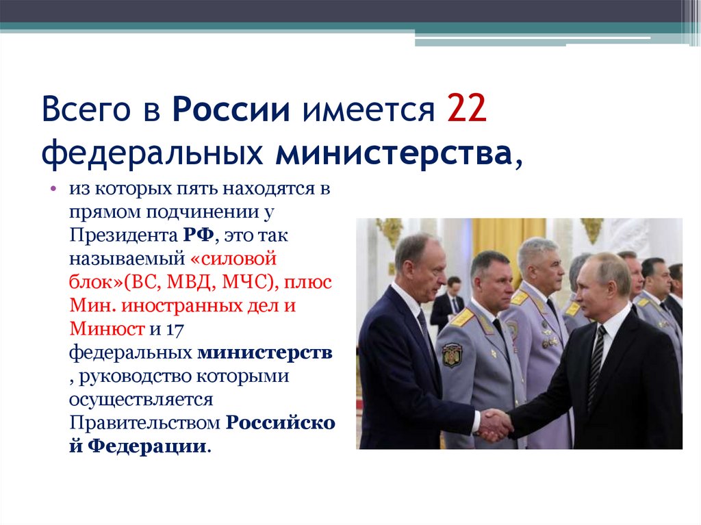 Всего в России имеется 22федеральных министерства,