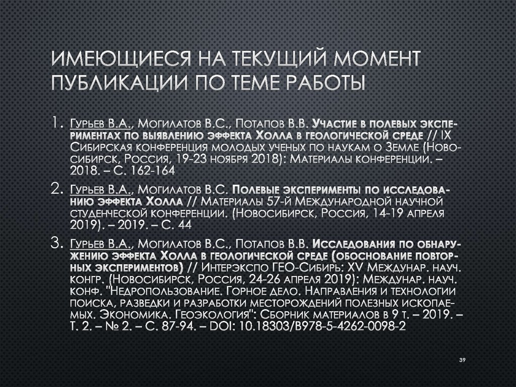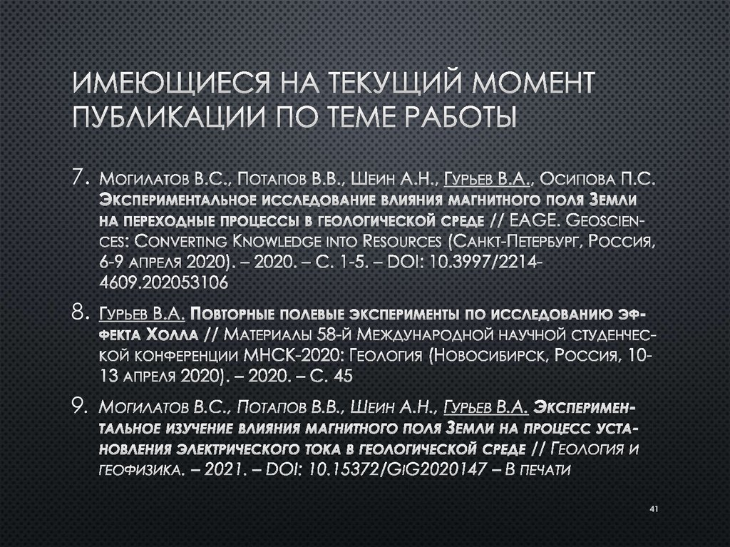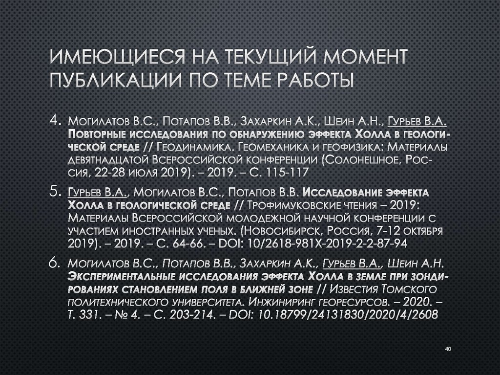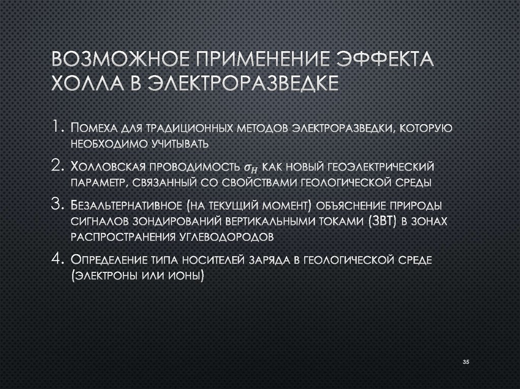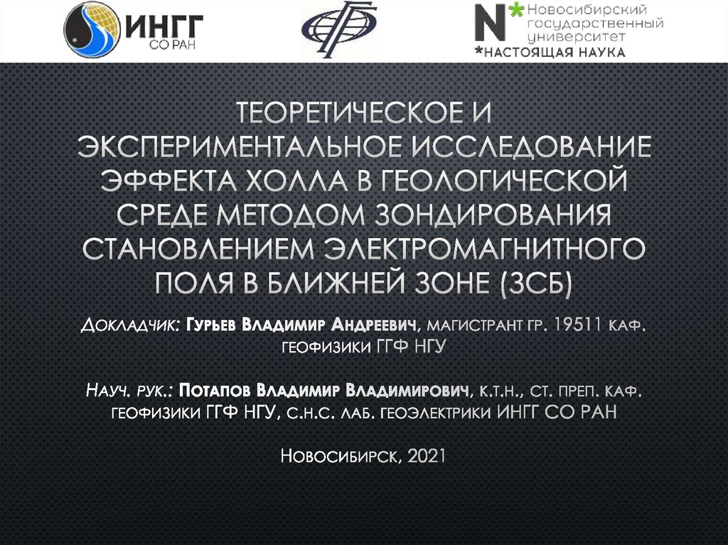 Теоретическое и экспериментальное исследование эффекта холла в геологической среде методом зондирования