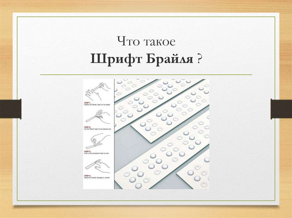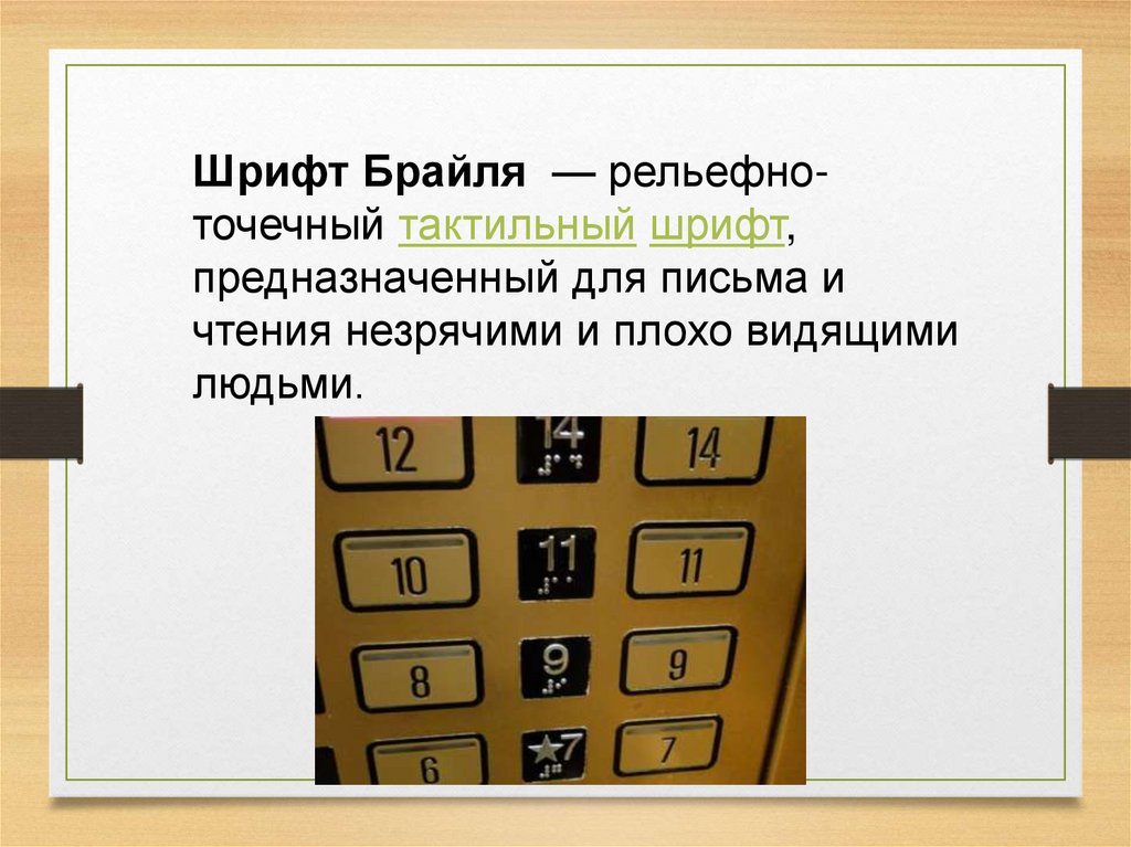 Шрифт Брайля — рельефноточечный тактильный шрифт,предназначенный для письма и