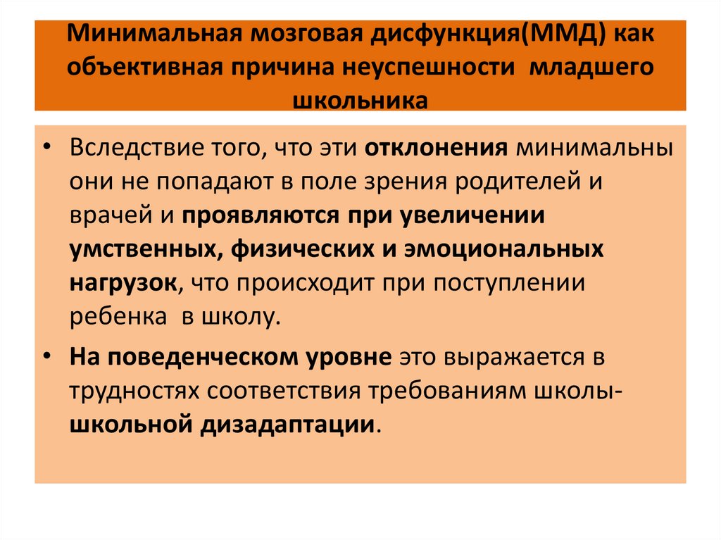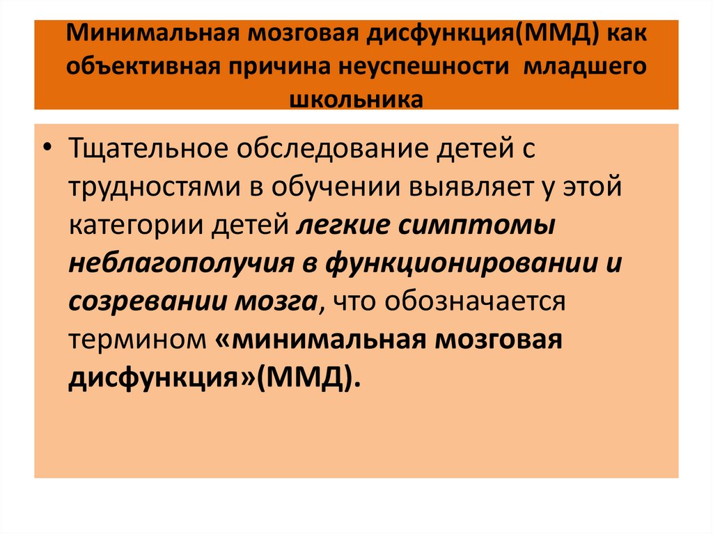 Минимальная мозговая дисфункция(ММД) какобъективная причина неуспешности младшего