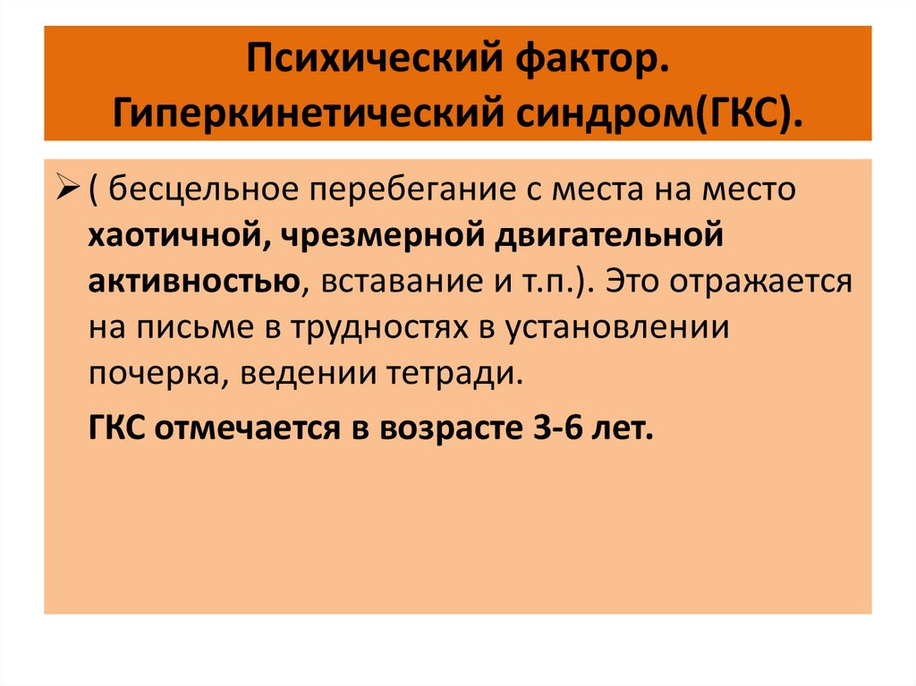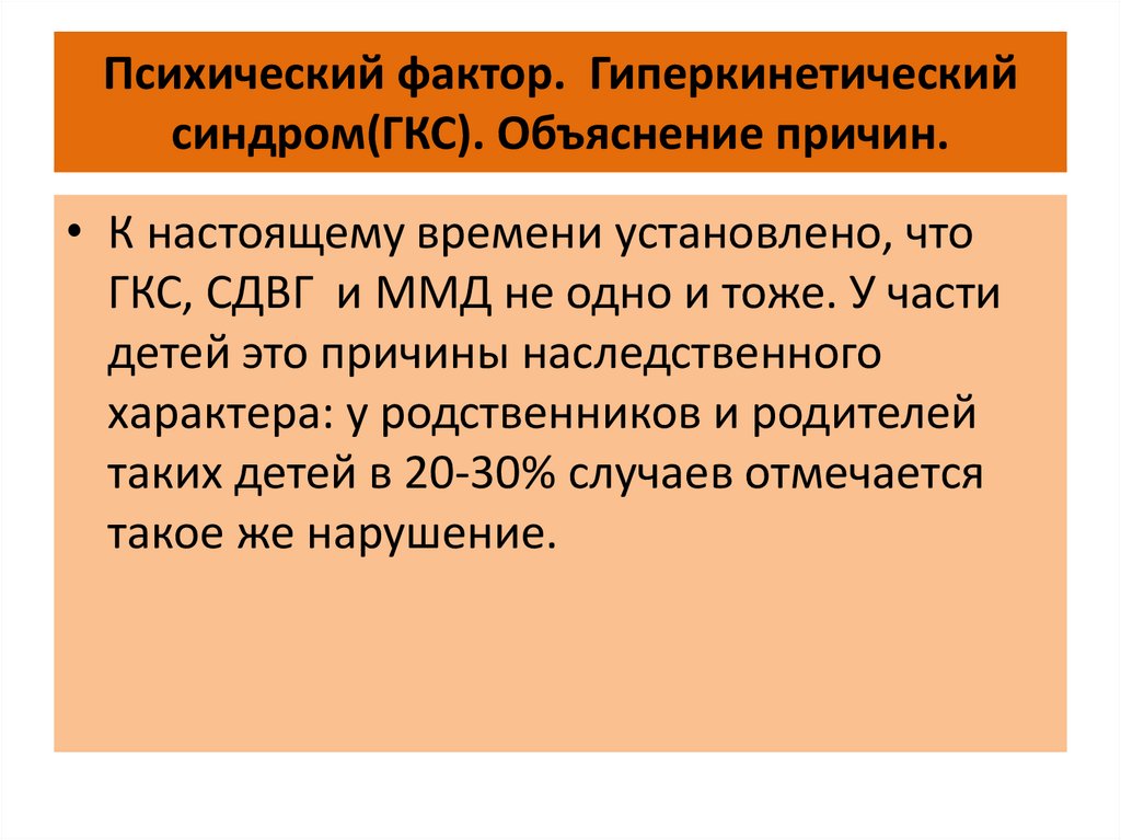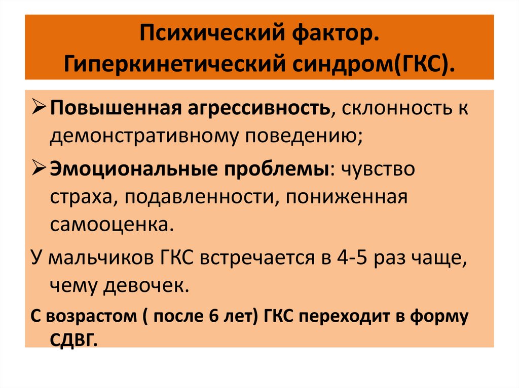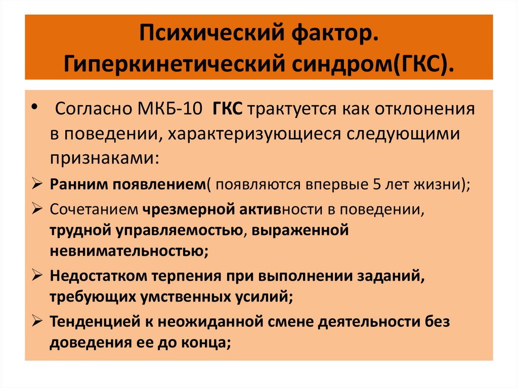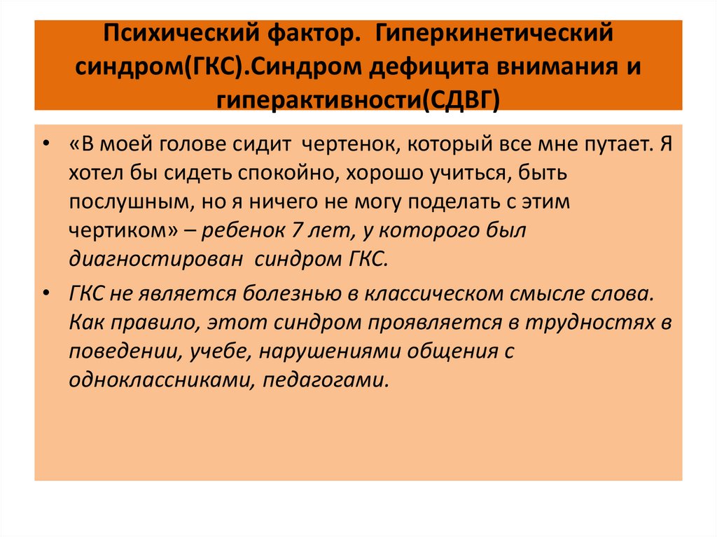 Психический фактор. Гиперкинетическийсиндром(ГКС). Объяснение причин.