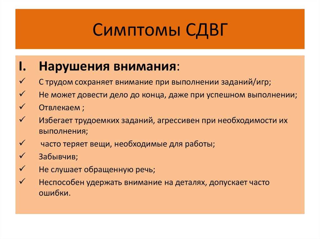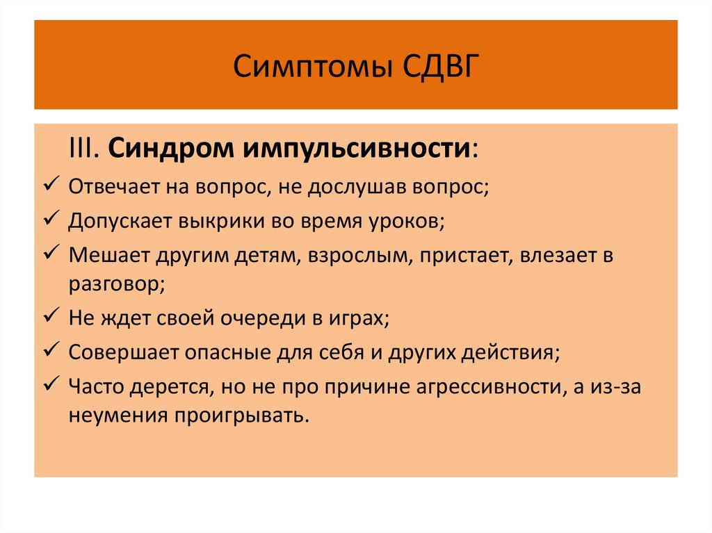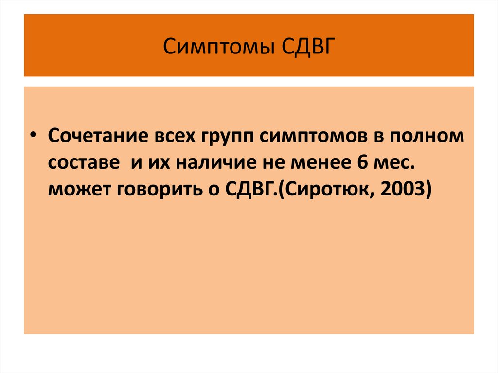 Симптомы СДВГ• Сочетание всех групп симптомов в полном