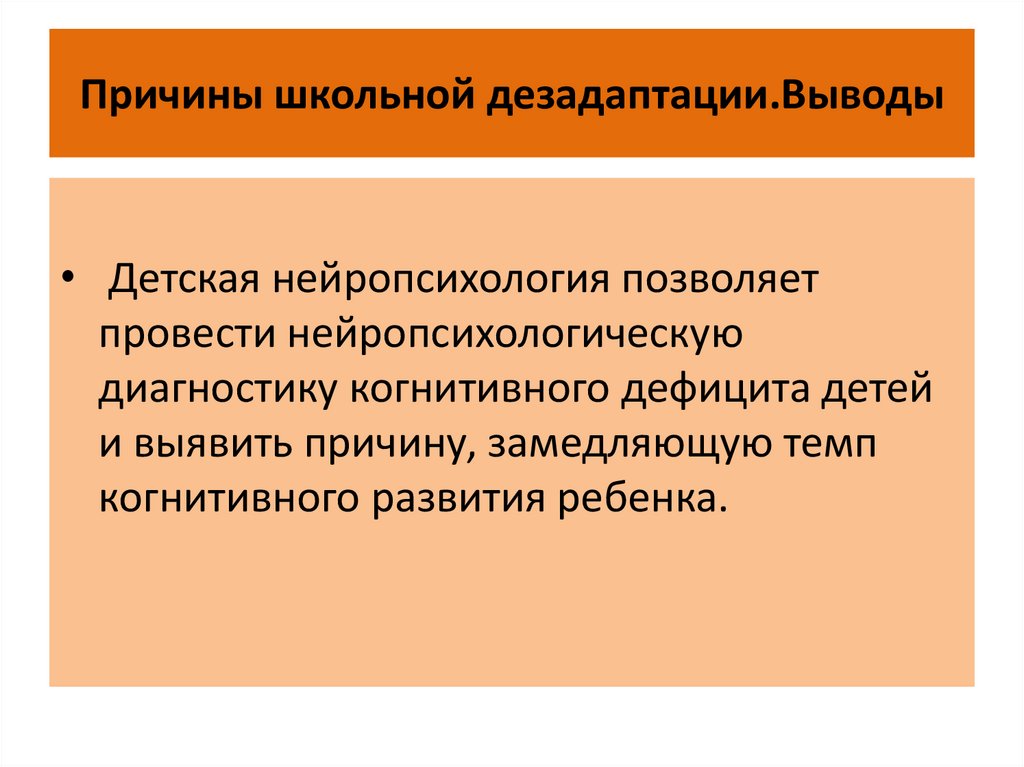Причины школьной дезадаптации.Выводы• Детская нейропсихология позволяет