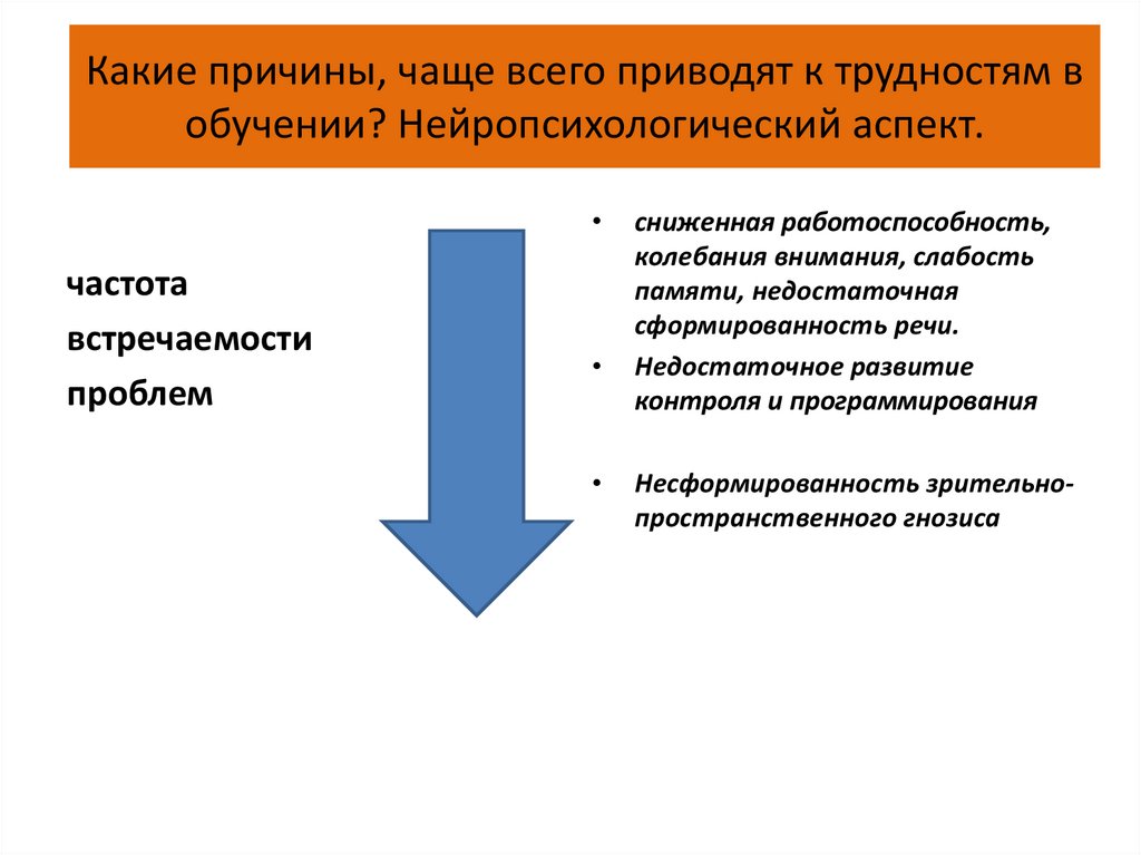 Какие причины, чаще всего приводят к трудностям вобучении? Нейропсихологический аспект.