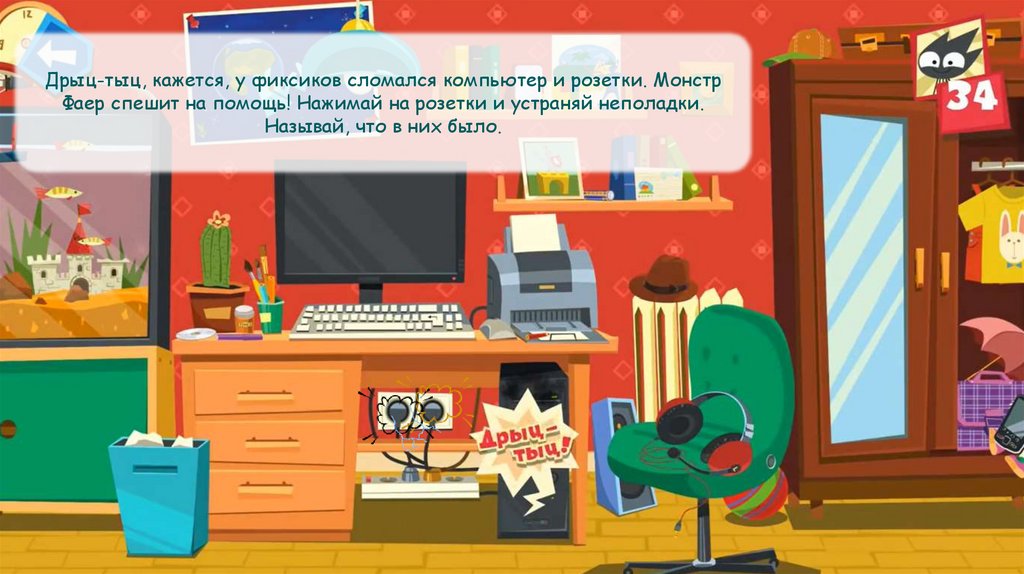 Дрыц-тыц, кажется, у фиксиков сломался компьютер и розетки. МонстрФаер спешит на помощь! Нажимай на розетки и устраняй неполадки.