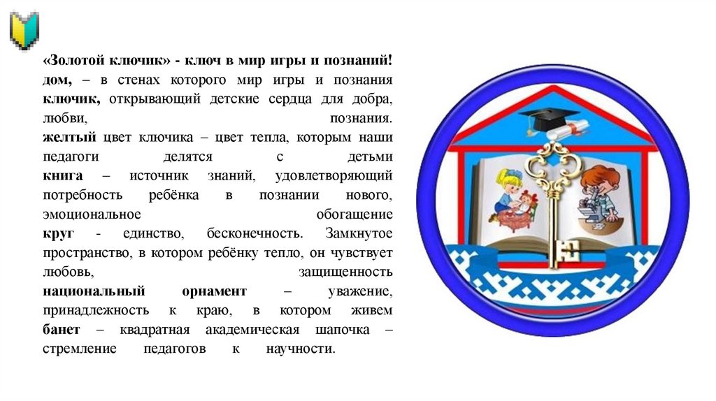 «Золотой ключик» - ключ в мир игры и познаний!дом, – в стенах которого мир игры и познания