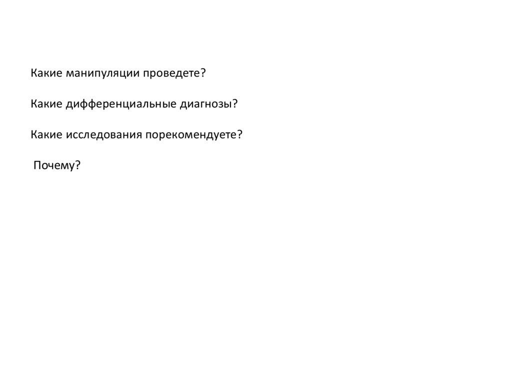 Какие манипуляции проведете?Какие дифференциальные диагнозы?
