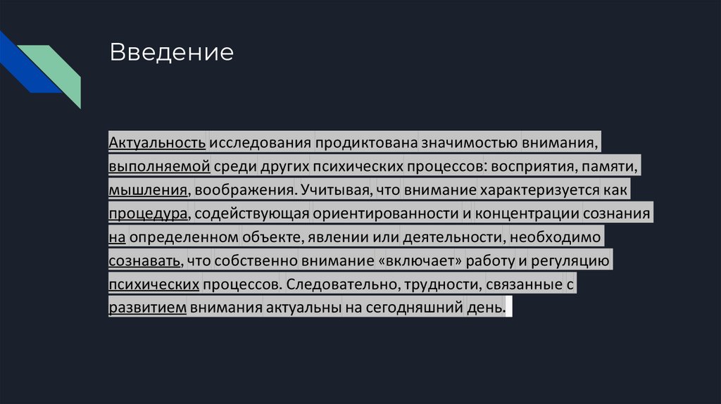ВведениеАктуальность исследования продиктована значимостью внимания,