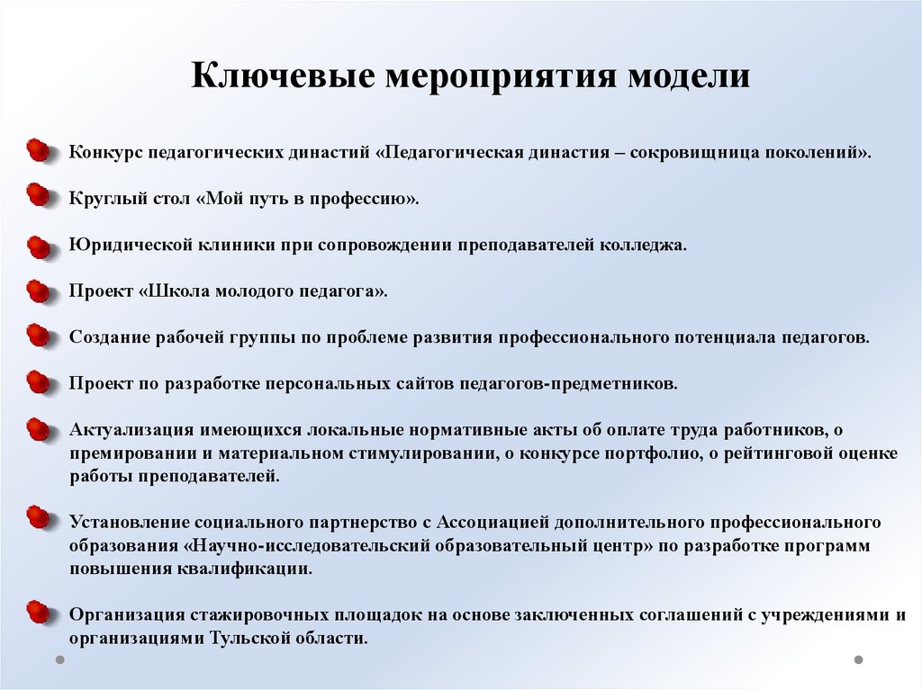 Ключевые мероприятия моделиКонкурс педагогических династий «Педагогическая династия – сокровищница поколений».