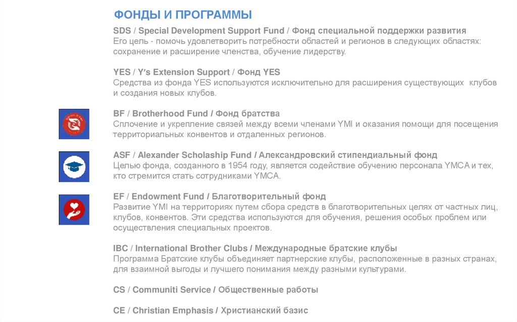 1. Выполнять функции сервисных клубов для YMCA.