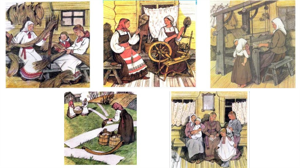 Обработка льна в старину.