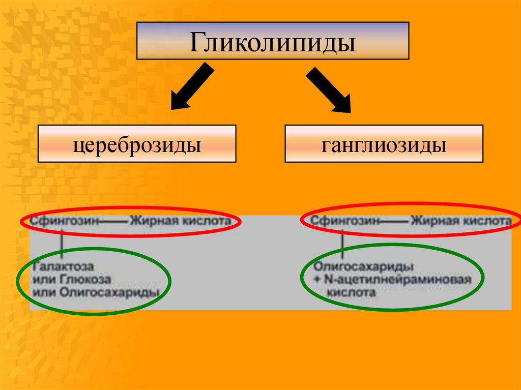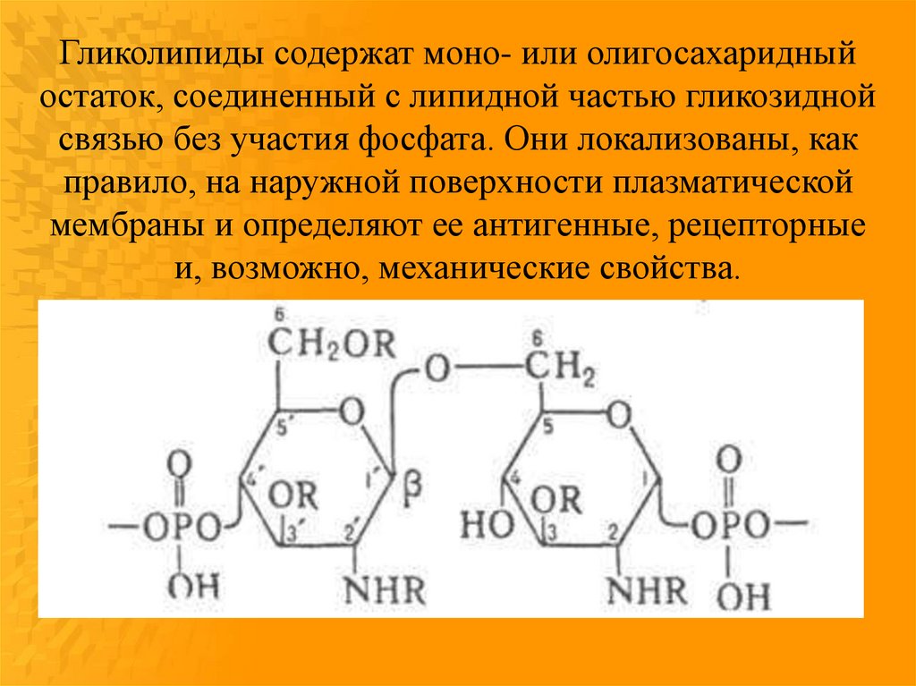 Гликолипиды содержат моно- или олигосахаридныйостаток, соединенный с липидной частью гликозидной