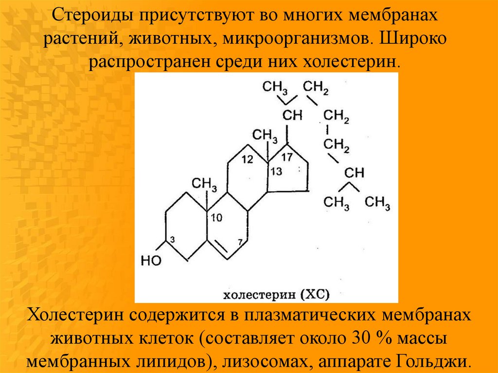 Стероиды присутствуют во многих мембранахрастений, животных, микроорганизмов. Широко