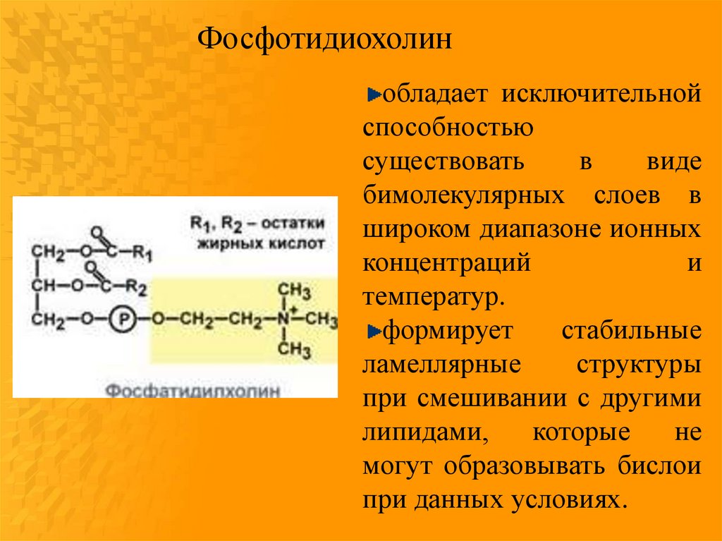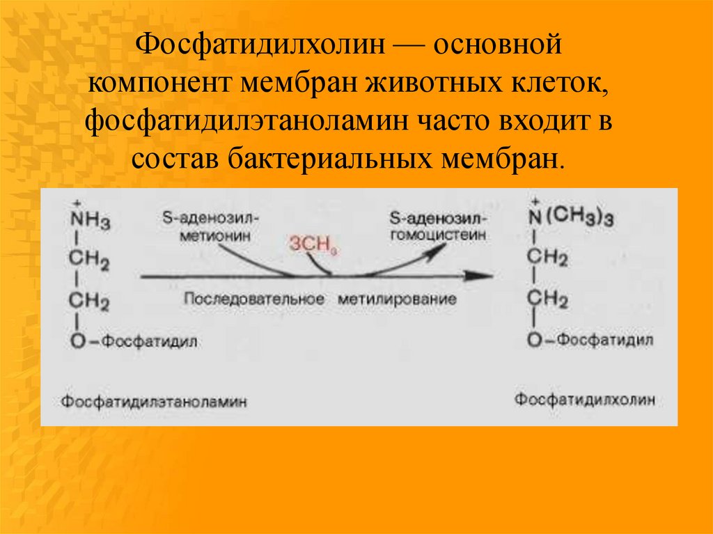 Фосфатидилхолин — основнойкомпонент мембран животных клеток,