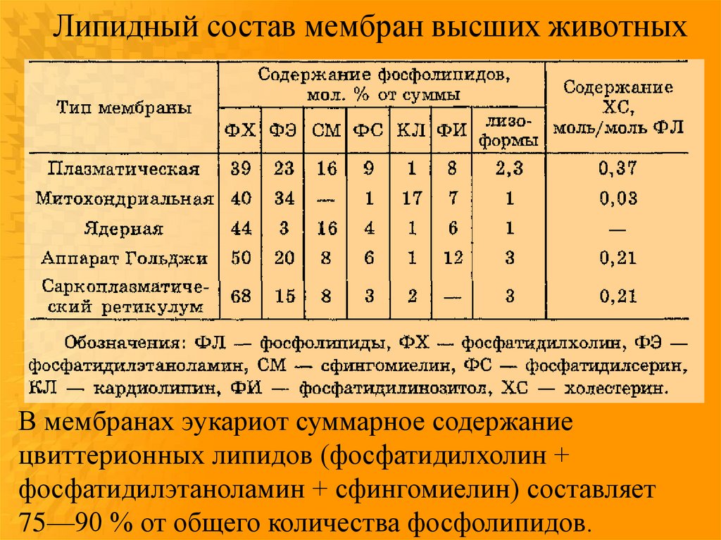мембранных липидов), лизосомах, аппарате Гольджи.