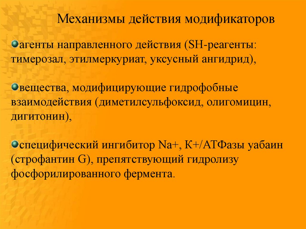 Механизмы действия модификаторовагенты направленного действия (SH-peaгенты: